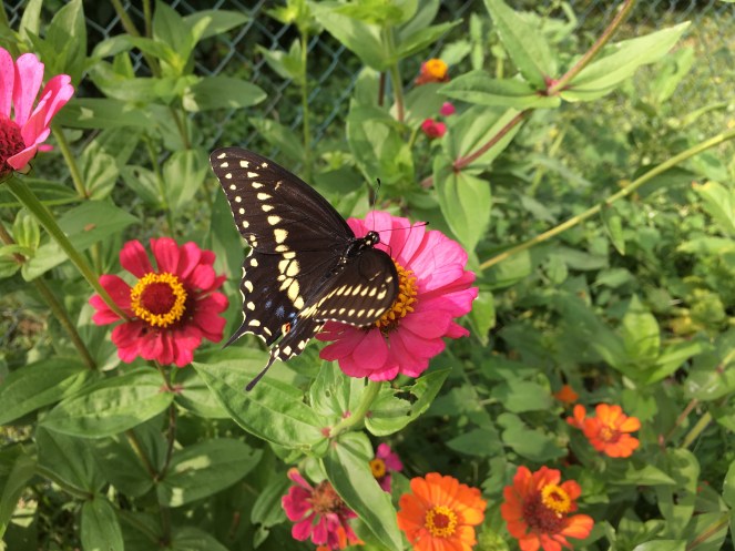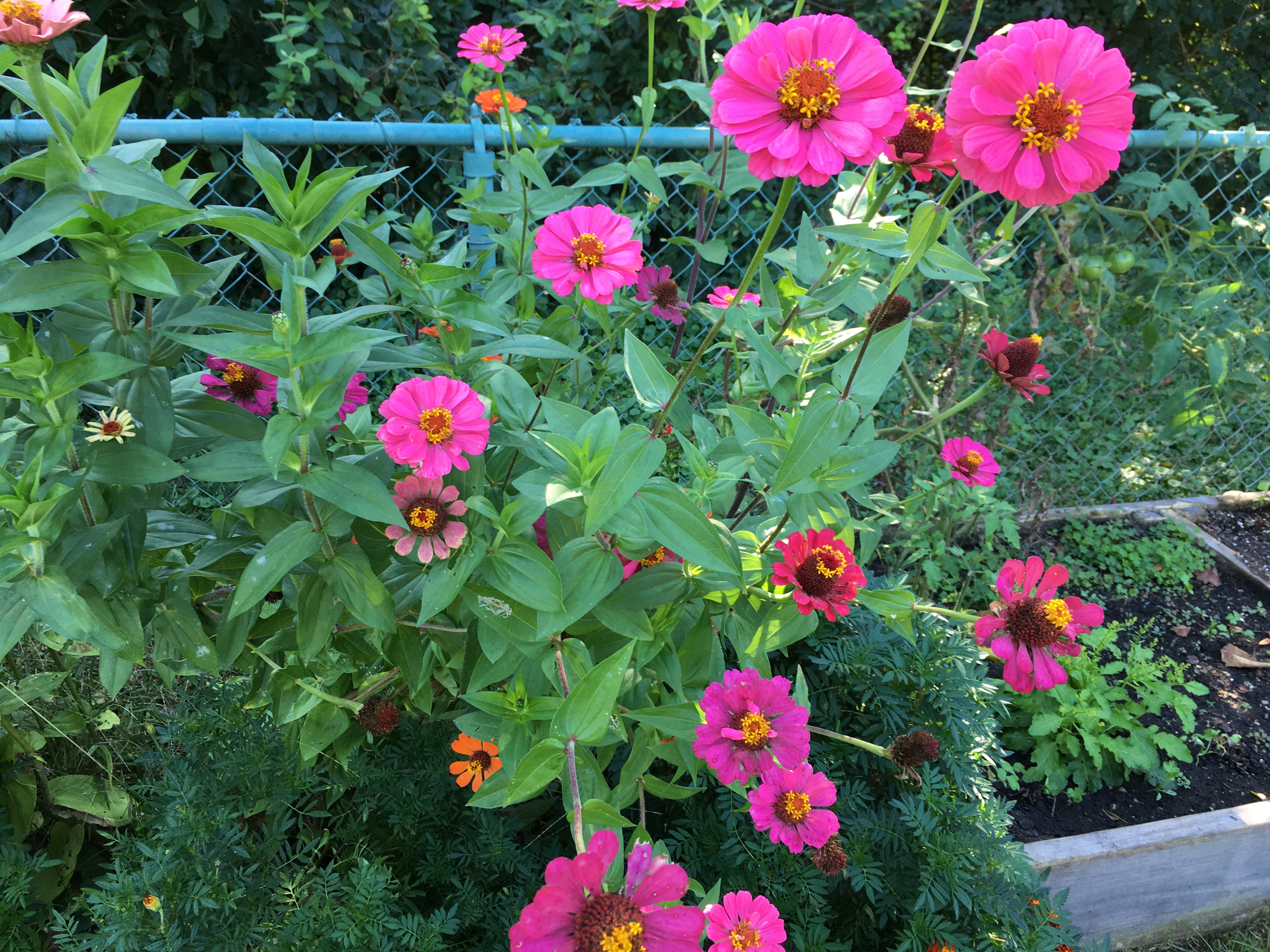 Our gardens continue to bloom, with the zinnias showing their usual impressive staying power and the marigolds exploding with rusty-orange blossoms.