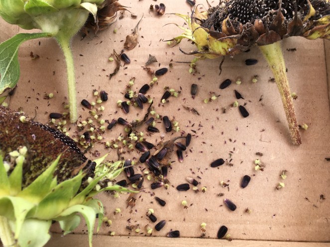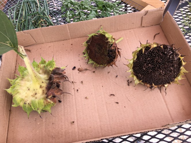 Even though these heads are probably not quite brown enough yet, there are seeds! Lots and lots of seeds…