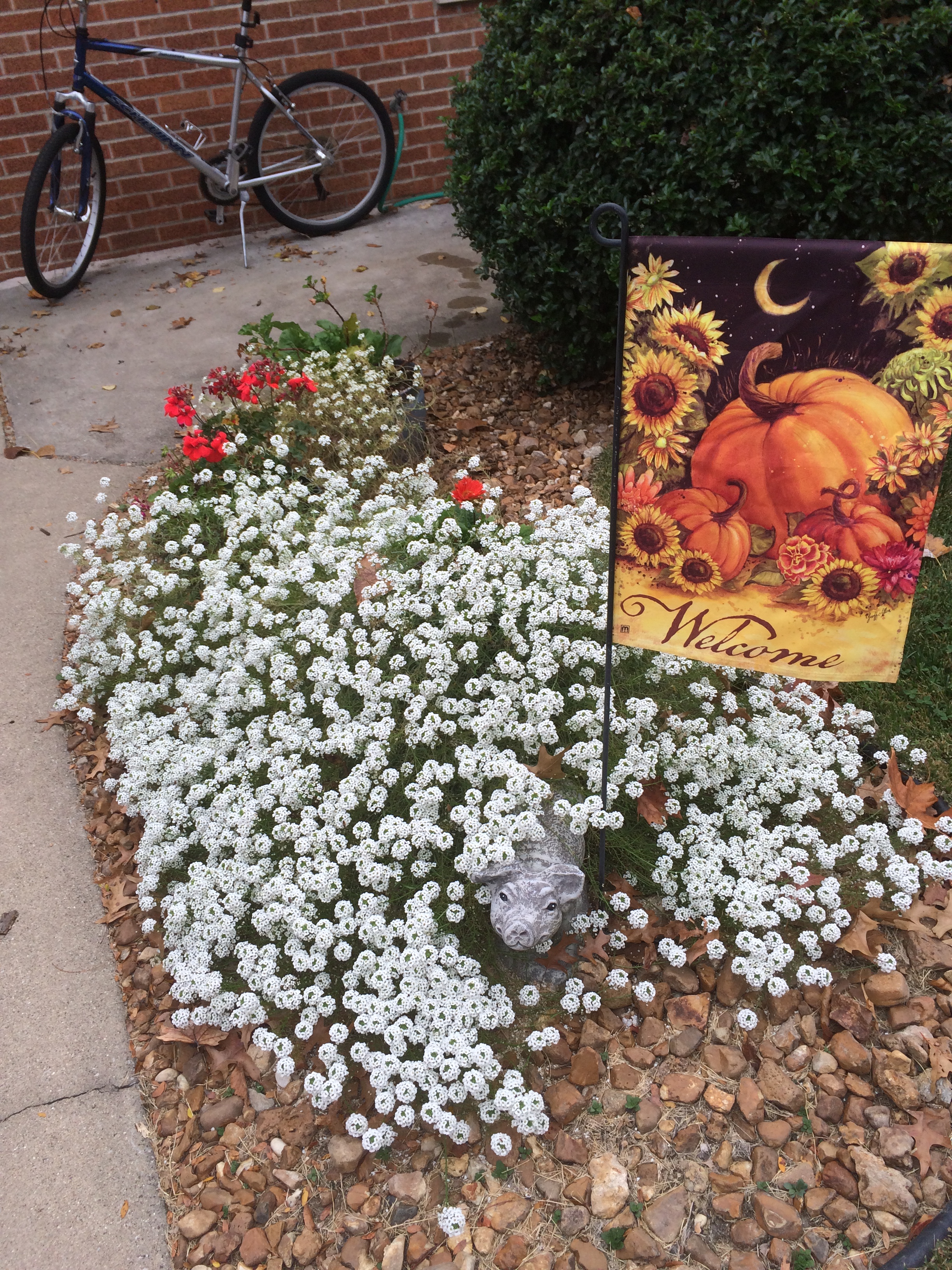 Welcome to fall, time of transition and preparation. The weather cools and softens, but there is a hint of the wild winter yet to come. The sun is bright but not baking; the clouds are gray but not ominous. Occasionally, a gust of wind whips up and whisks the leaves off the trees but then dies down quickly. Just a test. In the gardens, flowers and vegetables respond to the change. Some, like the alyssum above, put on a final big show, offering blooms that are bigger and better than anything put forth all summer.