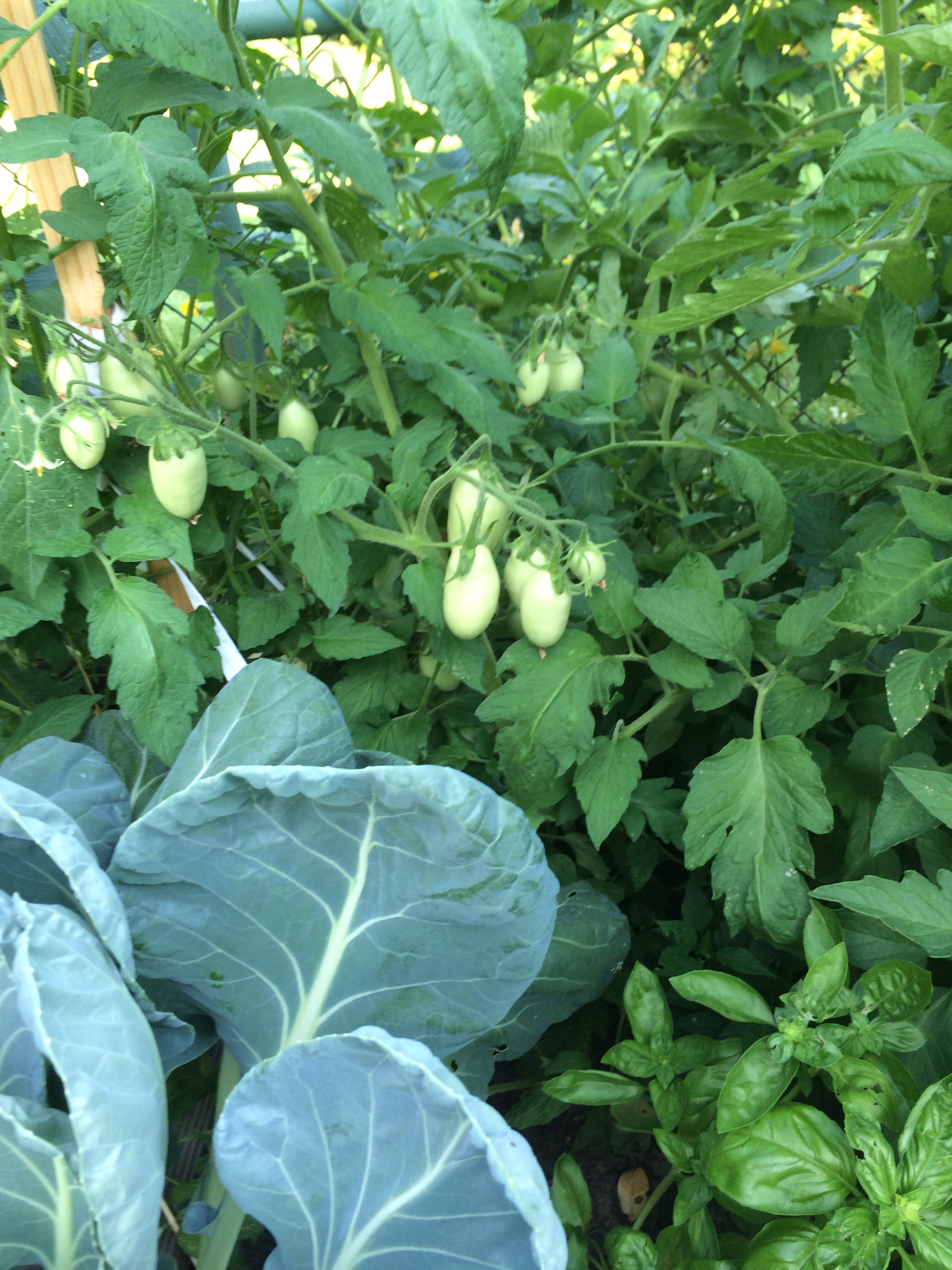 The great thing about Saturday is that (usually) I can get a meditation session and a yoga session completed in the morning. Feels amazing! Then, I can venture outside to see what the gardens have to offer. As it is mid-June, things are really getting lush and the oppressive heat of late summer is still weeks away. Our vegetable garden is a veritable jungle–so many leaves of different shapes, sizes, and greens! Tomatoes are a basic, simple green, while brussel sprouts almost glow with a pearlescent, blue-grey green. Basil has a definite yellow-green quality to it. Makes me want to get out my box of Crayolas!