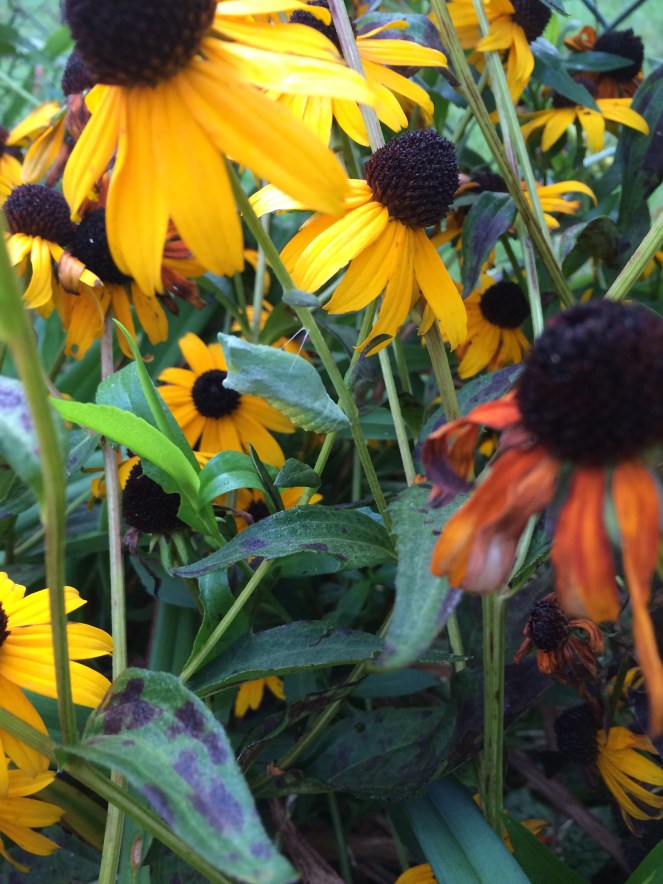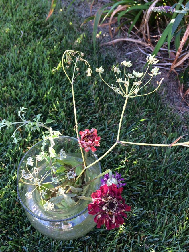 The flower patch along the back fence is looking especially cheerly this afternoon. It’s the breeze that does it. Not too much; not too little. Just enough to make the flowers nod and sway, just enough to make the cottonwoods wave hello, and just enough to create the soft, soothing, swoosh sound as it swirls its way through the branches. A dry, light breeze is a rare gift in the middle of August.