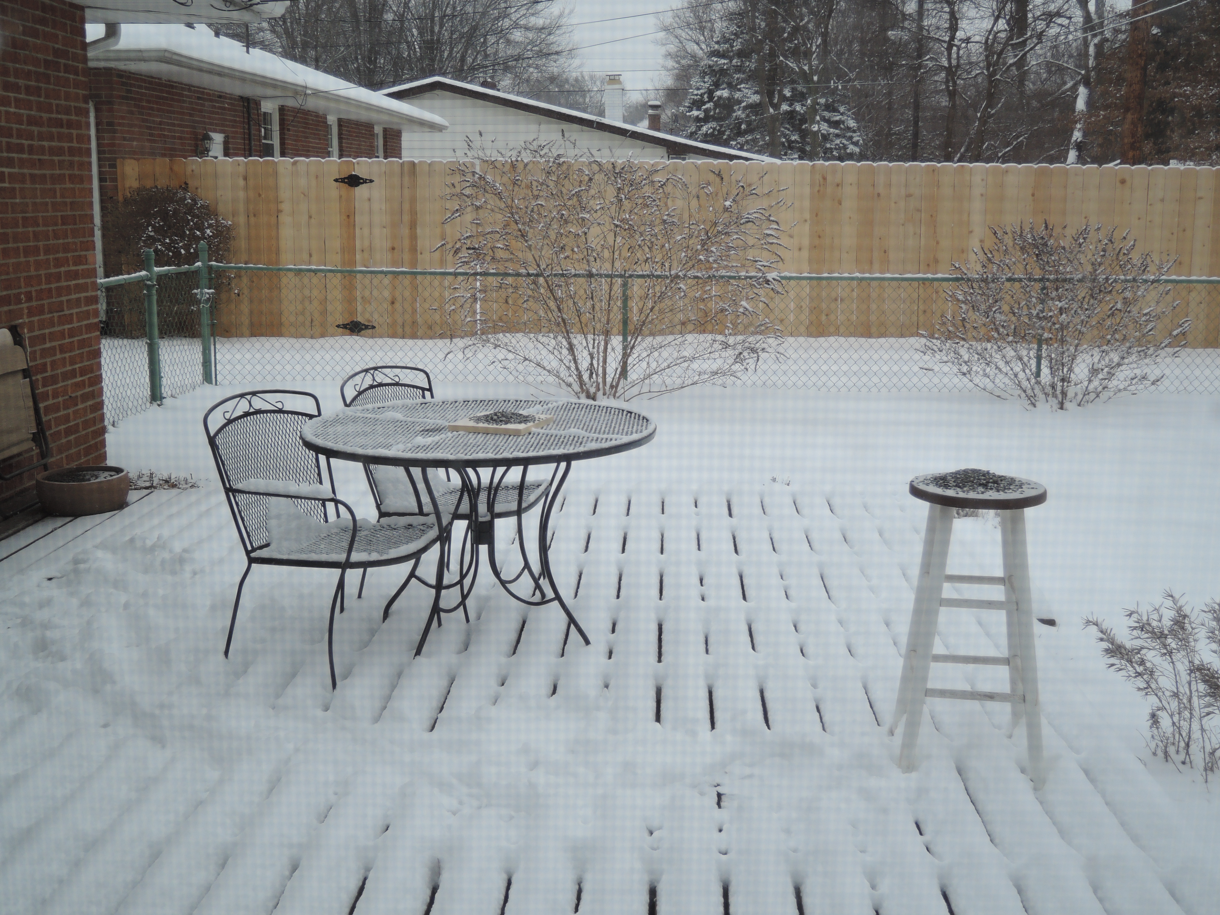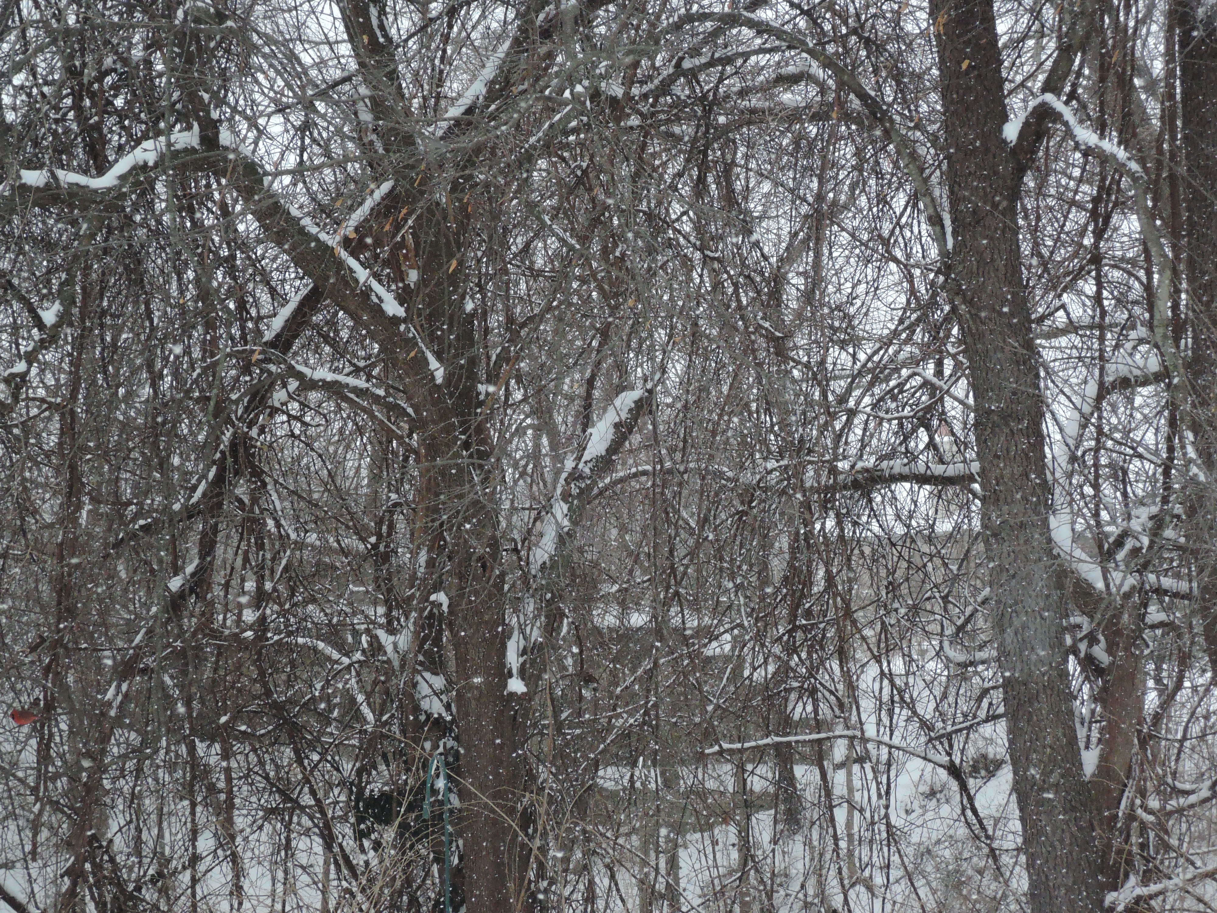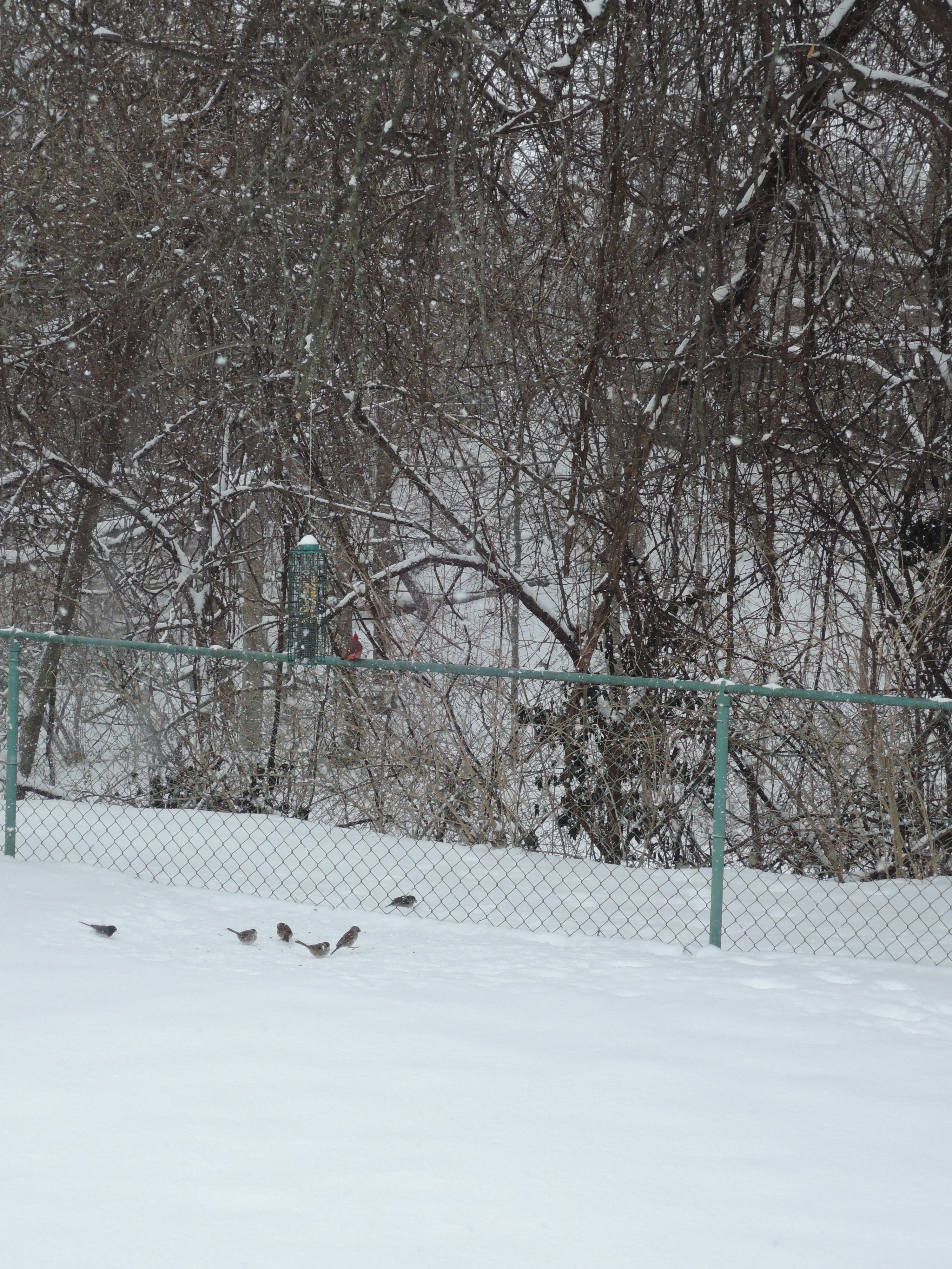 We were ready. Cat food and bird food supplies were laid in. For the humans, there was plenty of coffee, tea, and half-and-half. After getting the multiple texts, phone calls, and emails letting us know that the university would be closed on Monday, Joe and I settled in to enjoy a day of quiet beauty. Joe even invited the birds up to the house for their meals: