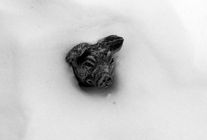 Good morning! On my way out to the car this morning, our lovely front garden pig greeted me from underneath his fluffy white blanket. He didn’t look any more annoyed than he usually does. Wrap up, boys and girls, it’s cooooold out there!
